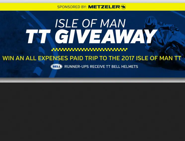 Win a $2,349.00 All-expenses paid trip to the 2017 Isle of Man TT. Complete the form and answer the question How do you describe yourself as a motorcyclist?