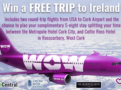 Win a $3,000.00 trip for two from New York City to Ireland. This giveaway includes airfare and a five night hotel stay to New York.