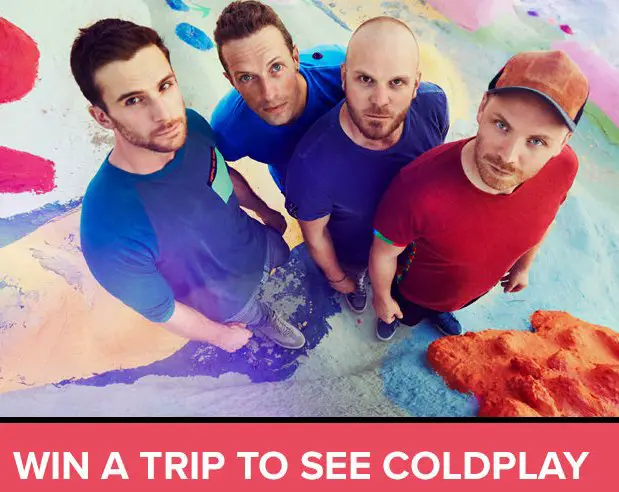 Win a trip to see Coldplay worth $2700 and includes everything you would want to have a great time! Listen to the sounds of winning by completing the sweepstakes entry form with your contact details to enter.