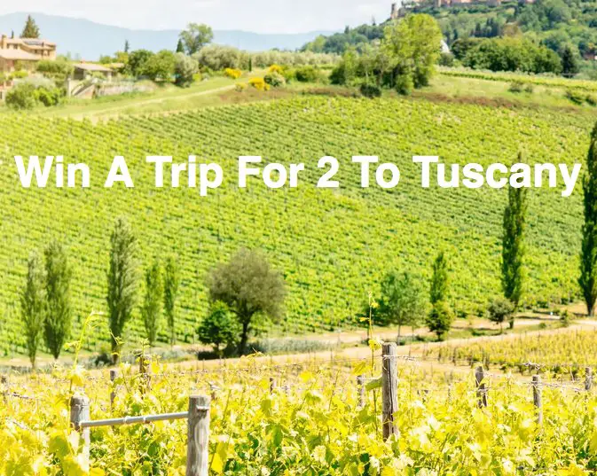 Win a $3,000.00 trip for two Tuscany, Italy. The prize ncludes airfare from New York, accommodations, meals and a you get to drive a Ferrari for 2 hours through the winding Tuscan roads. Easy to enter!