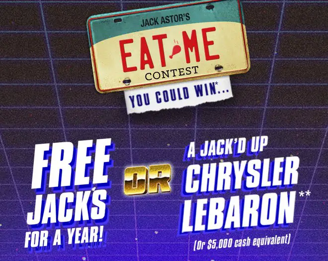 Win Jack Astor's food for 1-year worth $10,000.00. Visit a Jack Astor's restaurant and get a uniquely coded ballot. Without purchase, send an email to [email protected] with a 50-100 word essay as to why you should win.