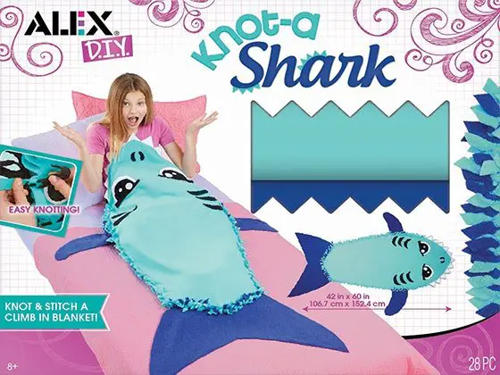 Be 1 of 4 to win a Knot-A-Shark DIY Kit from ALEX Brands worth $27.00. Get cozy with a shark! Just knot and stitch to make a fun shark blanket to wear, scare, and snuggle.