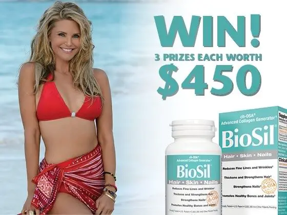 Site registration is required. 3 lucky winners receive a $150.00 full year’s supply of Christie Brinkley’s #1 age-defying supplement BioSil Hair, Skin, Nails plus a copy of Christie’s New York Times’ best-seller Timeless Beauty!