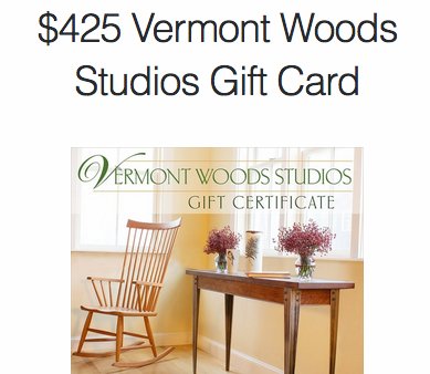A $425 Vermont Woods Studios Gift CardEntry Form