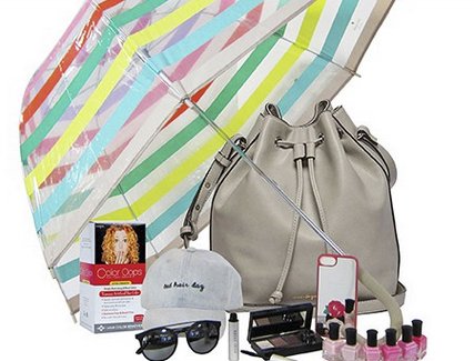 Win a $100.00 prize package that includes a pair of sunglasses, an umbrella, a hat, hair color remover and more.