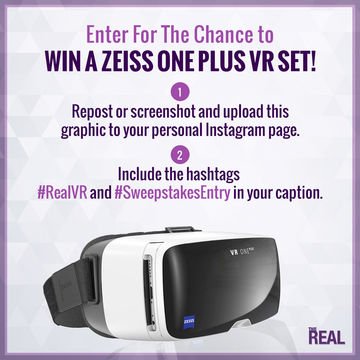 3 winners, a $99.99 Zeiss One Plus VR Headset. Follow @TheRealDaytime on Instagram. Repost the graphics LINK to your Instagram account. Include the hashtags #RealVR and #SweepstakesEntry.