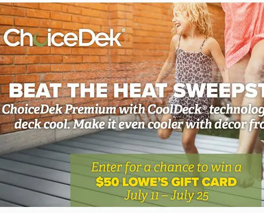 5 will win a $50.00 Lowe's gift card. Limit one prize per person. Now that summer is upon us, you should be able to use your deck or outdoor living space without it being uncomfortably hot