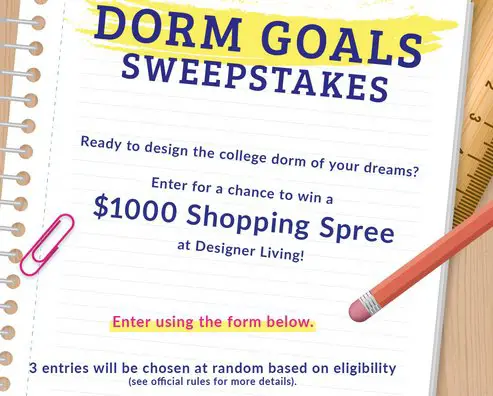 Win a $1,000.00 Designer Living shopping spree. 2 additional prizes of a $250 and a $100 Designer Living gift card.