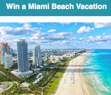 You can win a 3-day, 2-night Luxury vacation getaway in Miami Beach worth $1,200.00. To enter the sweepstakes, agree to the contest rules and complete the form.