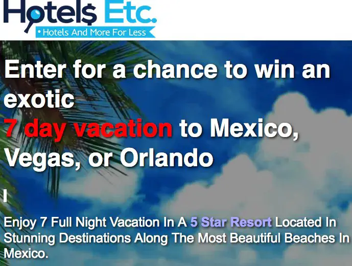 7 Day Vacation Sweepstakes - Hotels Etc.