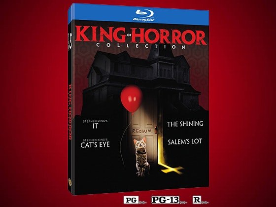 Win a King of Horror Collection Blu-ray worth $39.99. In horror, one name reigns supreme. Experience ultimate fear in one 4-film collection! Films include Salem’s Lot (1979), The Shining (1980), Stephen King’s Cat’s Eye (1985), and Stephen King’s It (1990).