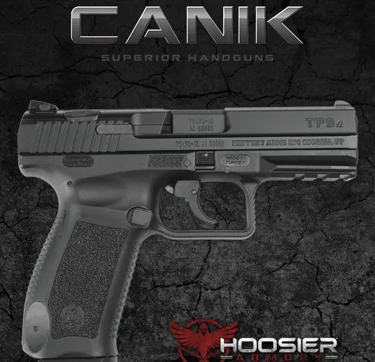 Win a $349.00 Canik TP9V2 9mm Pistol from Hoosier Armory. The TP9v2 is the next evolution of the popular TP9 series pistol featuring a cold hammer forged barrel, an ambidextrous top-slide-mounted decocker, fixed 3-Dot steel sights.