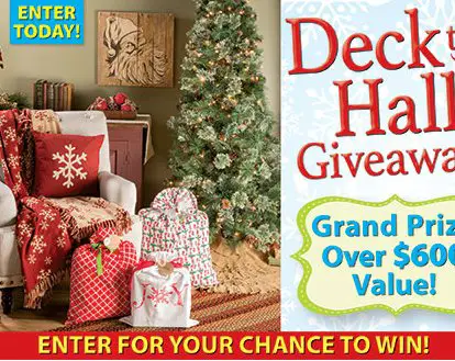 Win a $600.00 Lincoln Cashmere Tree from Through the Country Door, a Ruffled Burlap Tree Skirt from Annie Kay & Co., a Merry Snowflake. Throw and Pillow from Country Village Shoppe, a Standing Santa from Pine Cone Gift Shoppe, a Santa Portrait from Simply Pallets, and Fabric Gift Bags from Green Traditions Fabric Gift Bag Co.