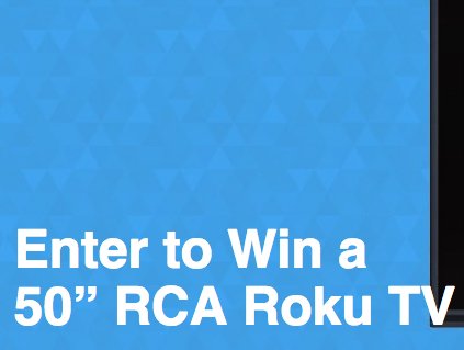Grand Prize is a RCA 50” 4K Roku TV Model #RTRU5027 worth $599.99. To celebrate the Newsy Roku Channel, they're giving away a 50" 4K RCA Roku TV!