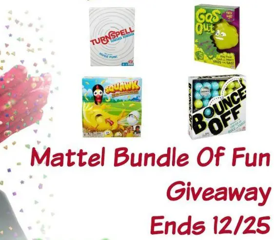 Snap Shouts, Turnspell, Uno Attack, Squawk, Bounce Off, Gas Out, all Mattel games. $100.00 value! This giveaway is part of our Holiday Gift Guide – Stop by to see all the giveaways and great products.