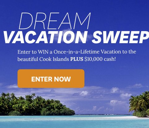 Grand Prize is a $16,950.00 trip for 2 adults 21+ to the Cook Islands originating from Los Angeles, CA; 2-nights accommodations at Pacific Resort Aitutaki; 3-nights accommodations in a Beachfront Bungalow at Little Polynesian Resort on the island of Rarotonga; and a $10,000 check which may be used toward additional travel expenses. Enter now!