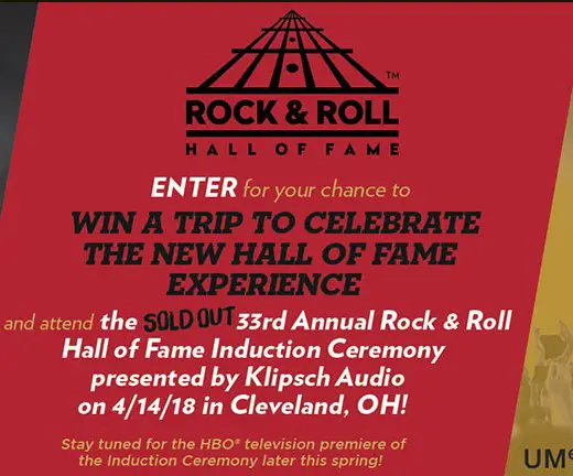 Grand Prize is a $3,500.00 3-night trip for 2 to Cleveland, OH to attend the 33rd annual Rock & Roll Hall of fame Induction Ceremony on April 14, 2018. Submit your entry today.