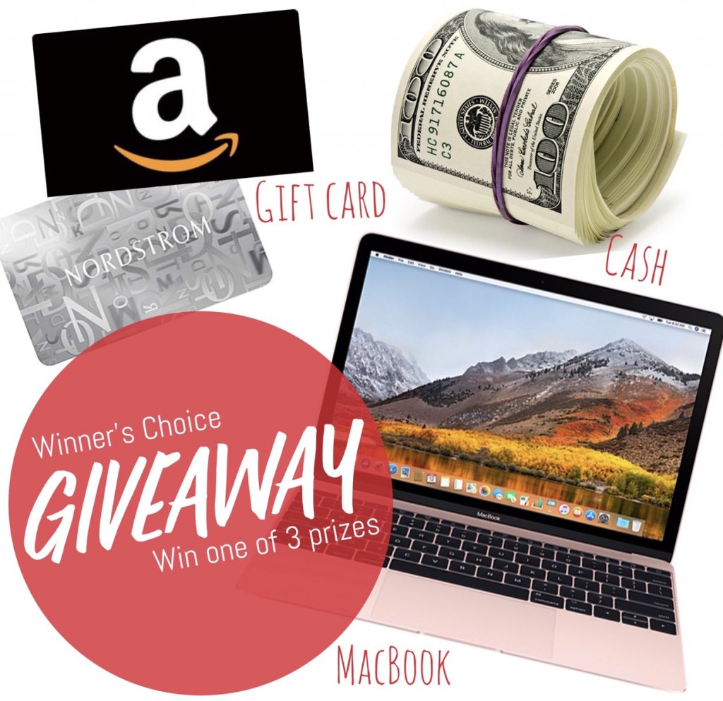 Enter this giveaway to win one of four great prizes! Winner gets to choose from 4 great prizes: - A MacBook Air or - A Gift Card for $900.00 to Nordstrom - A Gift Card for $900.00 to Amazon - A PayPal cash prize for $600.00.