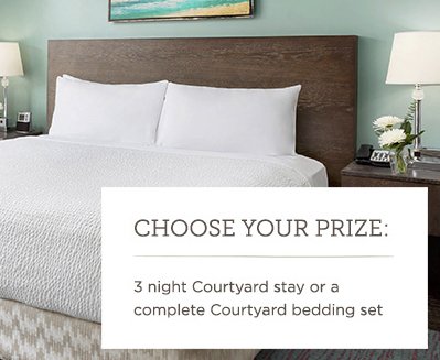 Grand Prize of your choice, a 3-night Courtyard stay or a complete bedding set. Either worth up to $1,500.00.