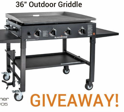 Enter to win a Blackstone Products 36" Outdoor Griddle worth $299.00. This giveaway event will end at 11:59 PM (EST) 6/05/18. The winner will have 24 hours to email their information back.