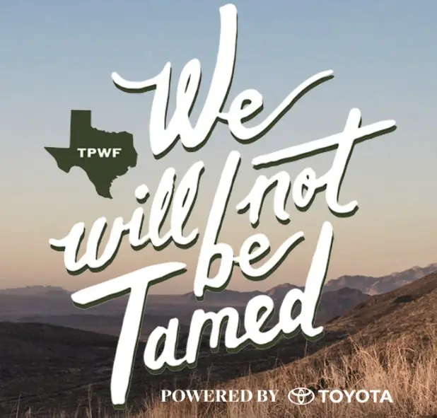 Texas only! Win a $50,000.00 Toyota Tundra or one of 27 smaller prizes. Texas Parks and Wildlife Foundation is raising awareness and encouraging all Texans to get involved in conserving the wild things and wild places of our state. “We Will Not Be Tamed” calls you to appreciate the wildness of Texas, the vastness of our Texas spirit and why we should be inspired to conserve it.