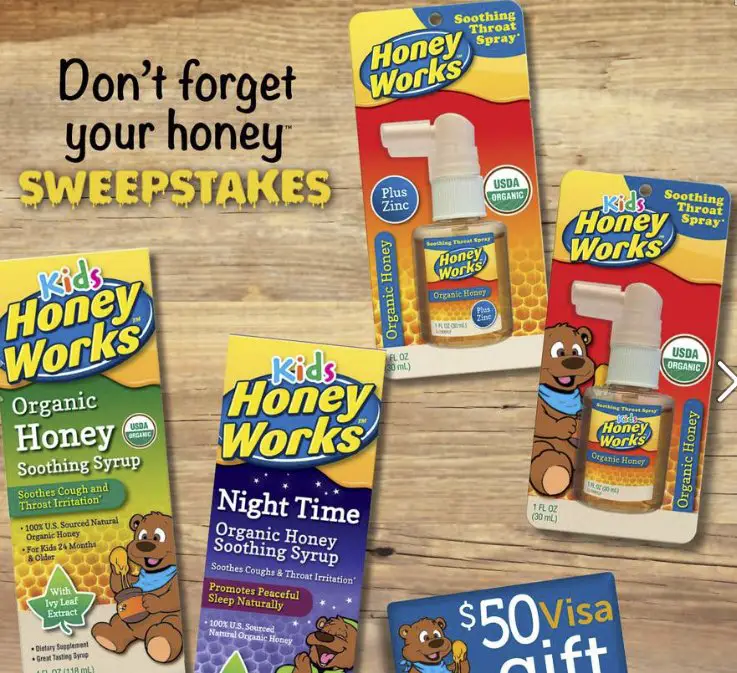 $50 Visa gift card and package of HoneyWorks.Entry Form