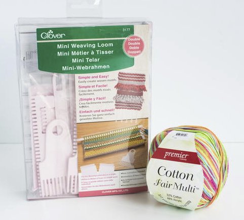 Mini Weaving Loom and skein of Premier Cotton Fair Multi Yarn.Entry Form