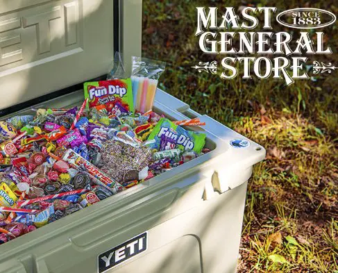Win a $500.00 YETI Tudnra 45 cooler and candy from Mast General Store’s candy barrels. Cooler must be picked up at a Mast General Store location.