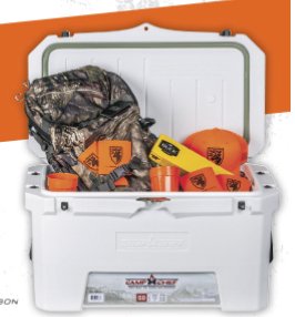 Camp Chef 50 qt cooler, Buck 110 Knife, Camelbak Trophy TS Pack, Federal Hats, Koozies/Beer Cups, and Tumbler stickers.Entry Form