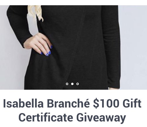 Isabella Branche is fashion boutique specializing in Trendy Fashion for Women Sizes 4 to 18. Enter to win a $100.00 Gift Certificate.