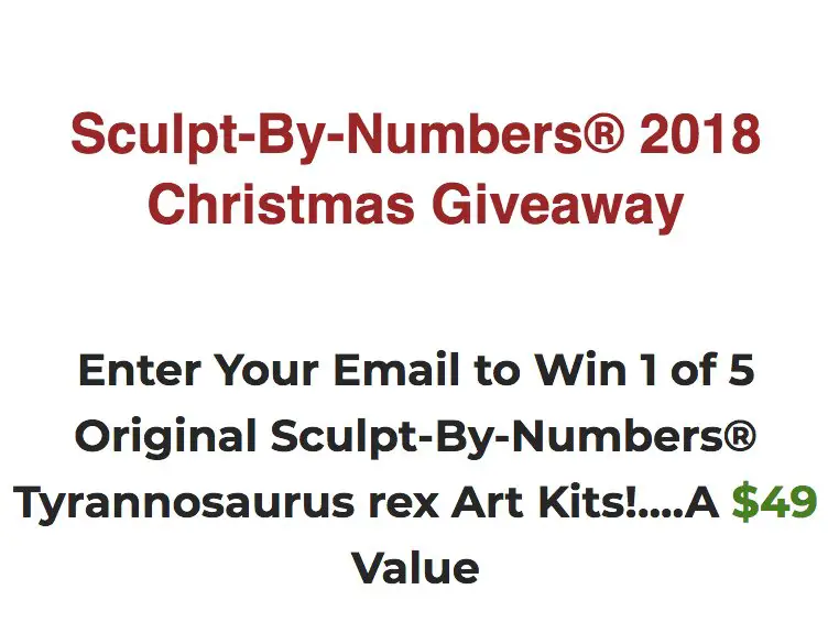 Sculpt-By-Numbers 2018 Christmas! Enter Your Email to Win 1 of 5 Original Sculpt-By-Numbers Tyrannosaurus rex Art Kits!....A $49.00 Value.