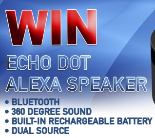 Grand Prize is a AVX Echo Dot Bluetooth Portable Speaker worth $199.00. Get additional entries for completing activities.