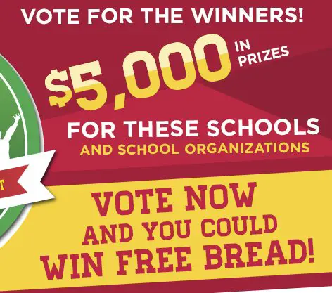 Grand Prize is a $200.00 Bread for 1-year, awarded as 52 free product coupons. Vote for your favorite school. Vote now by Selecting the "Vote" Button for the School/School Organization and complete the Entry Form.