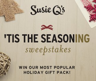 Susie Q'S red metal gadget box filled with essential Santa Maria style BBQ products. This promotion is managed by Susie Q's Brand.