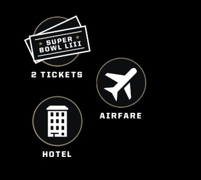 One winner will get $10,000.00 valued in two tickets to Super Bowl LIII on Feb. 3, 2019 in Atlanta, GA including airfare and hotel stay.