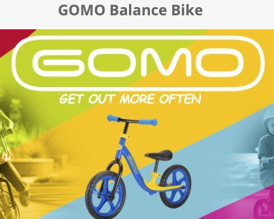 Child's balance bike from GOMO Sports. Win yourself Amazon's #1 Balance Bike worth $60.00 for kids.
