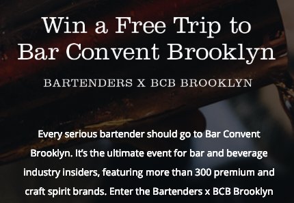 Enter to win a $1,000.00+ 2-night trip for one to Bar Convent Brooklyn on June 11-12, 2019, in New York, NY. Submit your entry by April 30 if you hope to go for free.