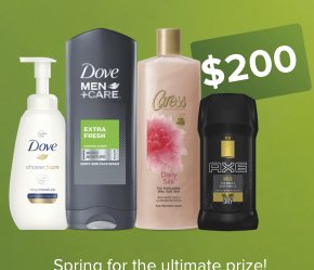 Enter for a chance to be one of 13 weekly winners of a $200.00 year's supply of personal care products from your favorite brands!