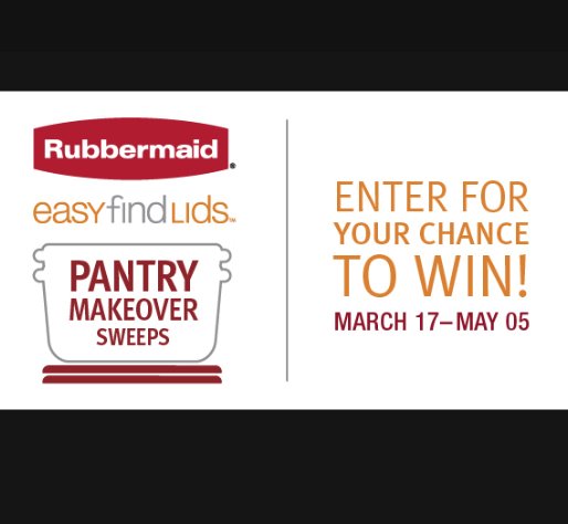 Win a $5,000.00 Rubbermaid Pantry Makeover. Limit of ten total Sweepstakes Entry per person, per email address, per phone number.