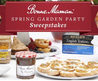 Win $500.00 worth of premium treats from Bonne Maman, Walkers Shortbread, MaraNatha Nut Butters, and Bigelow Tea! Host an unforgettable Spring Garden Party in your own backyard!