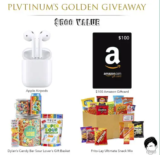 Win Apple Airpods, a $100.00 Amazon Gift Card, Dylan’s Candy Bar Sour Lover’s Gift Basket, and a Frito-Lay Ultimate Snack Mix assortment from PLVTINUM.